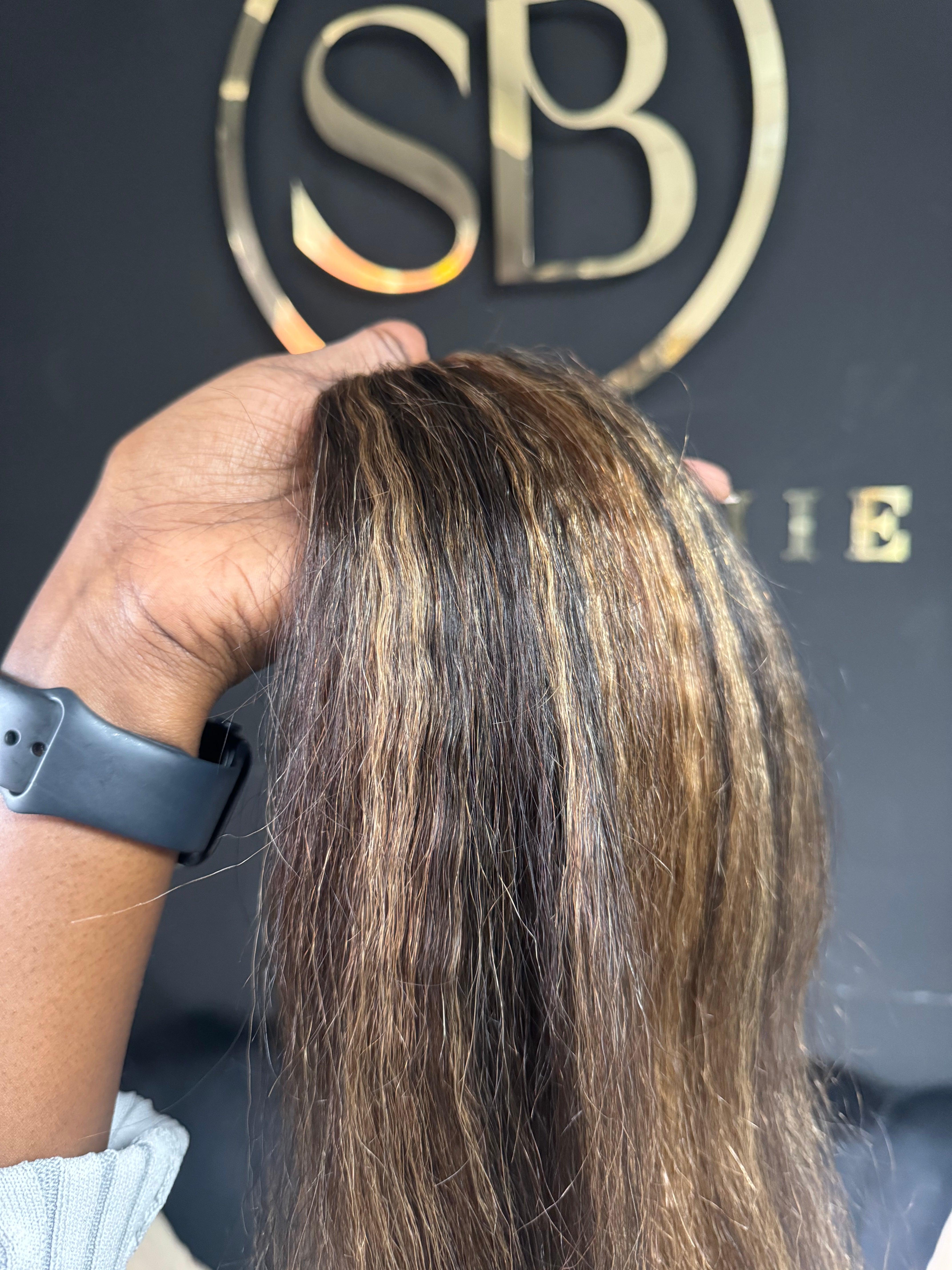 The perfect highlighted blonde, brown & 1b colour in our kinky straight texture. Now get the look while match your perfect hair texture.