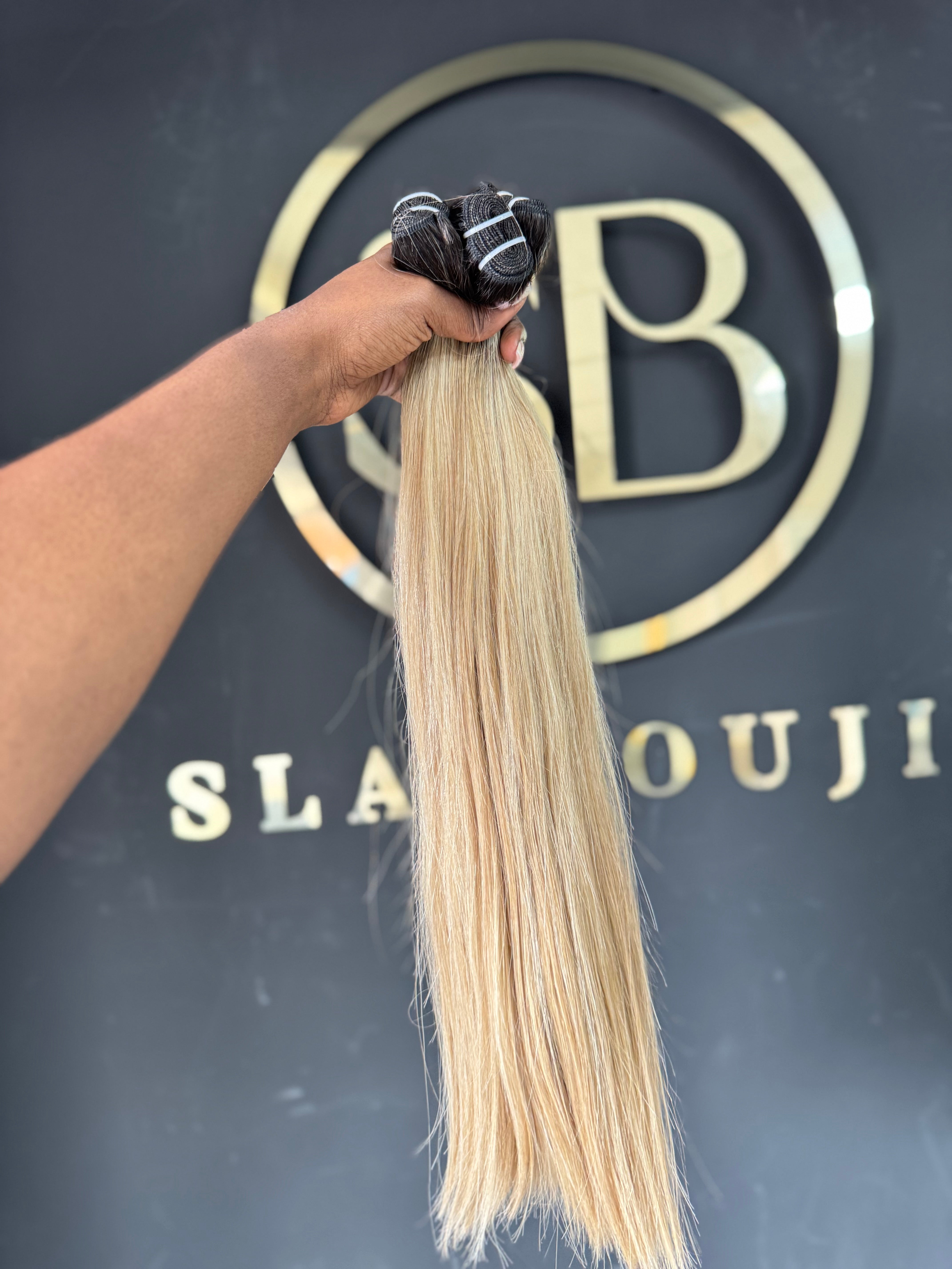 The perfect blend if you have natural black roots or have natural black hair without dying your natural hair. These bundles ombré root natural 1b to a mix of two light blondes. ( this is the price for one bundle we recommend x3 bundles for a full head)